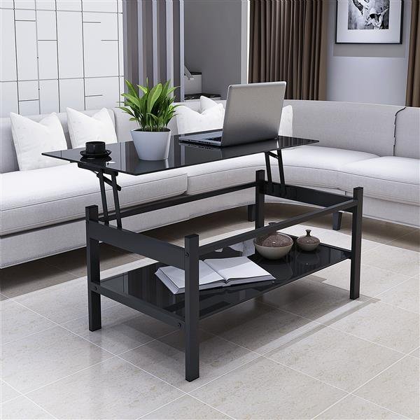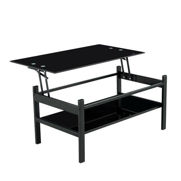 Home > Glass Lift Top Coffee Table, Modern Simple 2-Layer Tempered Glass Coffee Table for Living Room, Black
