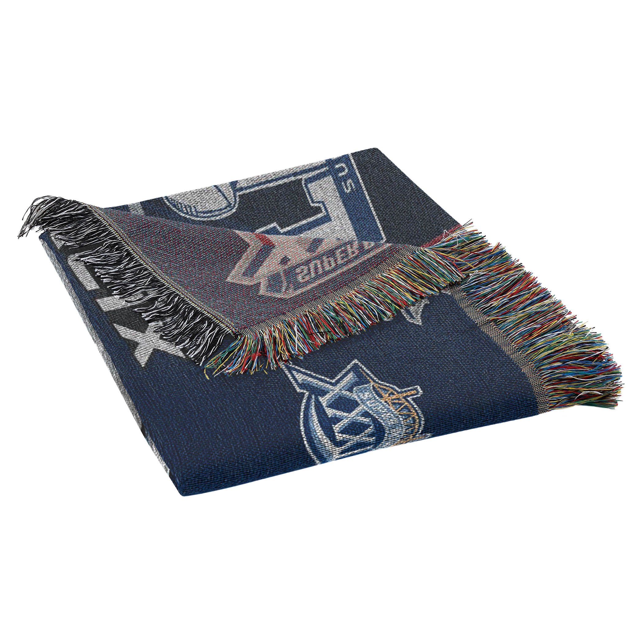 Show your team spirit with an Officially Licensed NFL Commemorative Woven Tapestry by TheNorthwest. These heirloom quality tapestries are a tribute to American craftsmanship. Grab a MADE IN USA tapestry that celebrates your favorite team's championship wins. Each victory year is listed in bold detail for all to see. Use it as a room accent or decorative wall-hanging. These 48"x 60" tapestries have fringes on all sides.